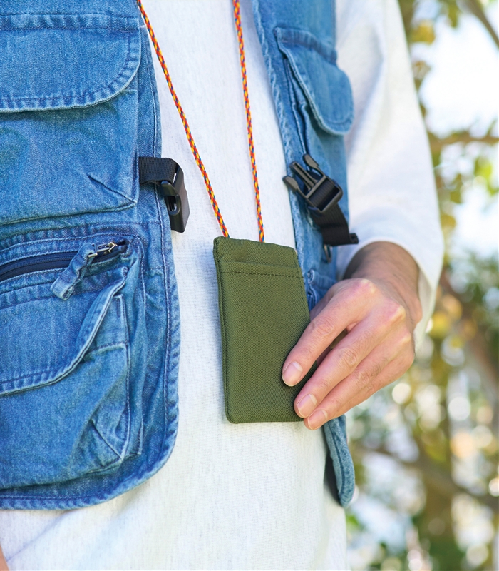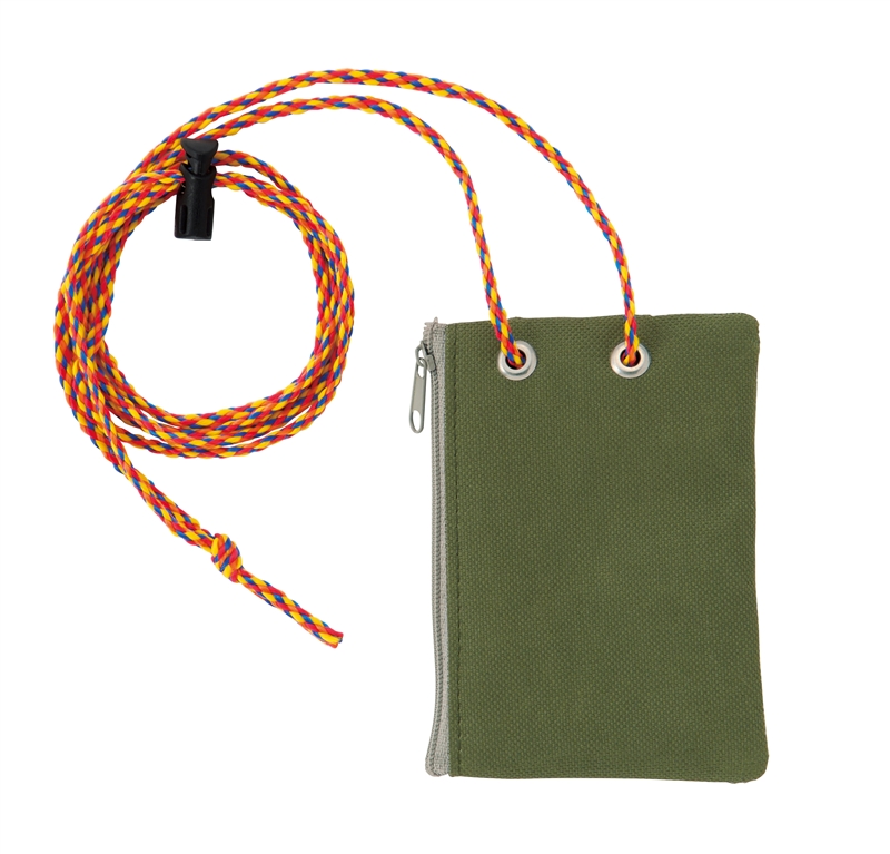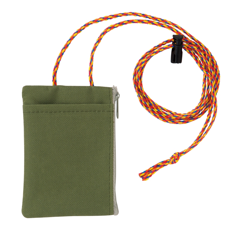 ファスナーを開けると、内側にキーリングが付いています。外ポケットにはカードも入ります。アジャスター付きのロープで首から下げることができて、お散歩やお出掛け、社内移動時だけでなくアウトドアレジャーや野外フェス、お祭りなどシーンを選ばず使えるアイテムとしておススメ!名入れ印刷にも対応しております。