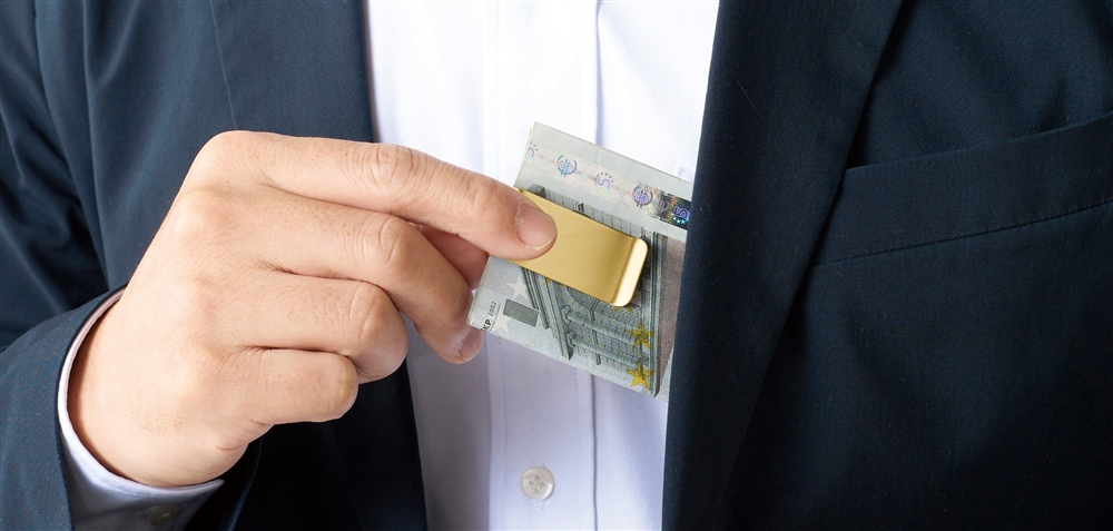金色のマネークリップ&ポケットルーペセット