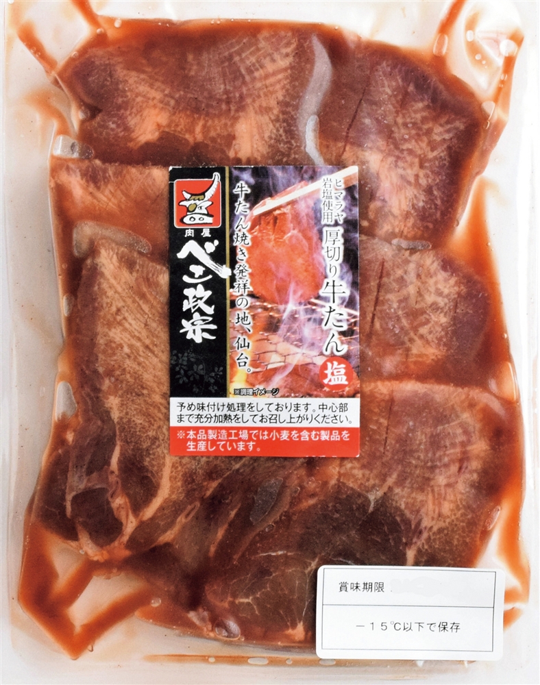 べこ政宗は牛タン焼き発祥の地仙台にあって牛タン土産の元祖です。 仙台名物厚切り牛たんです。牛たん塩は、牛タン焼きの基本。あっさりとした味わいの中、牛タンのおいしさを100%楽しめます。