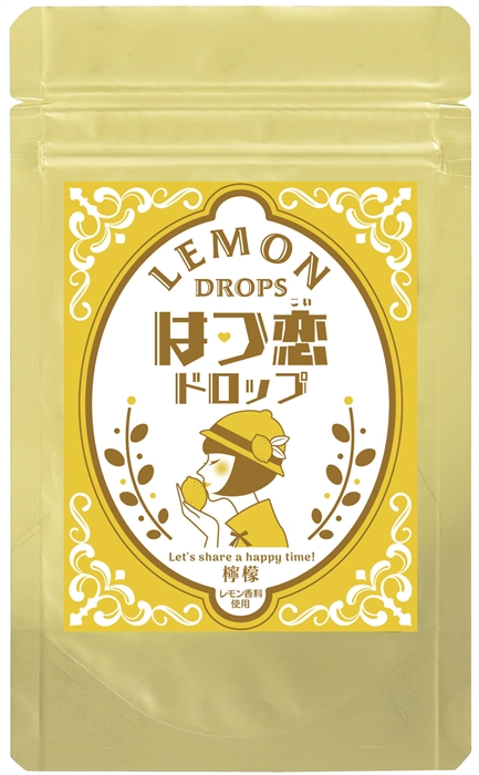 レトロなモダンガールのパッケージにキュン♪初恋のように小さく甘酸っぱいレモン味のドロップ。