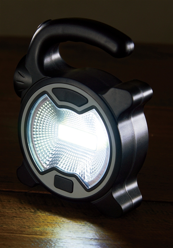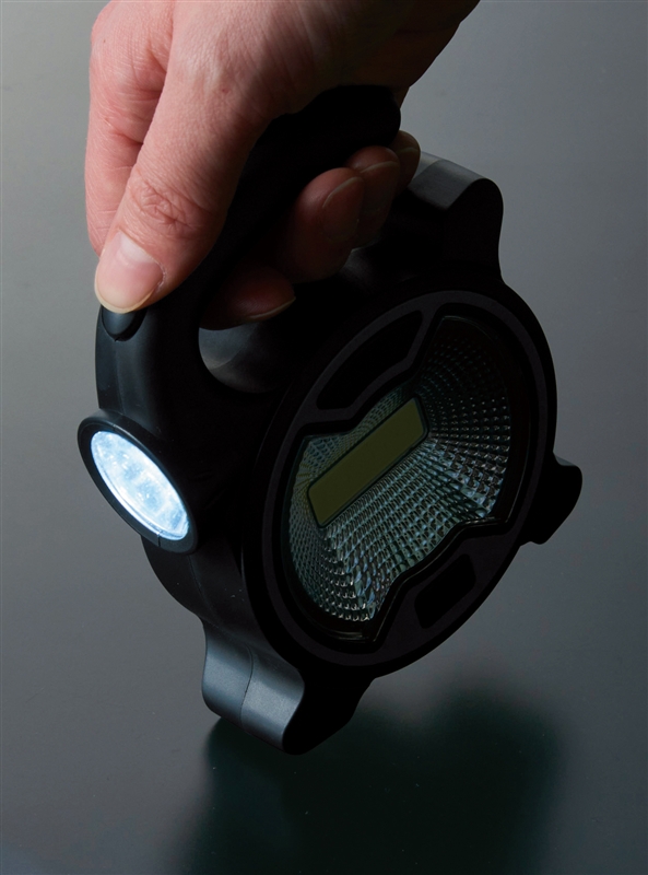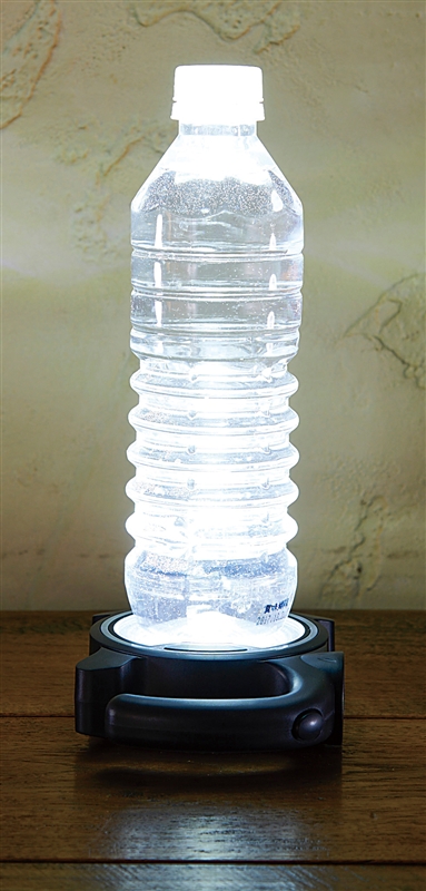 しっかり握れるグリップが特徴のコンパクトライトです。持ち運びしやすいサイズで、ハンディライトとしてもデスクライトとしても2WAYで活躍し、平置きしたライトの上に水入りペットボトルを置くと光が拡散し、非常時の簡易ランタンに早変わり。アウトドアや防災用としても重宝し、コンパクトながら多用途ライトです。