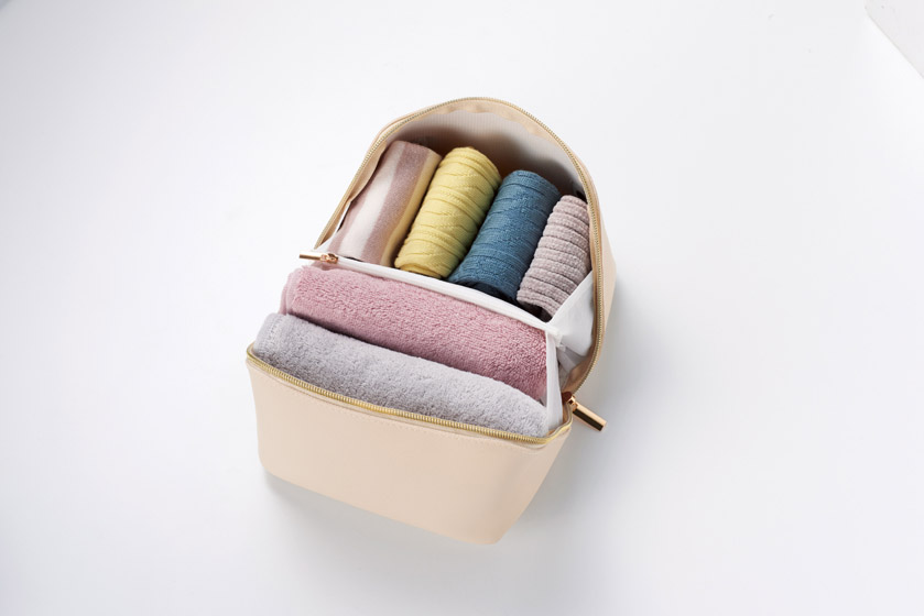 中央は小物収納に便利なファスナー付ポーチ。