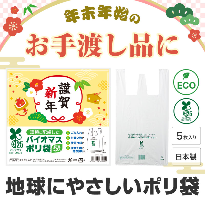 謹賀新年 バイオマス25%ポリ袋(5枚入り)