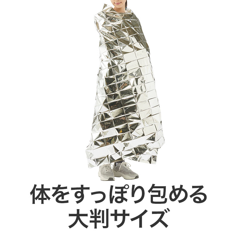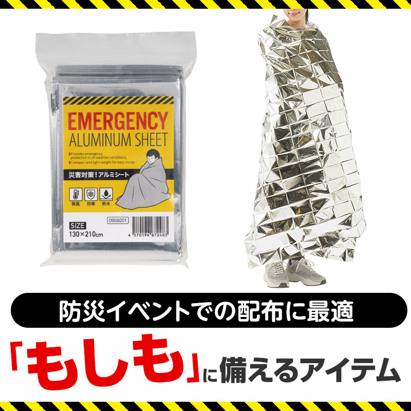 防災セットに必ず入れてほしいアルミシート。広く訴求していただけるよう、シンプルパッケージで価格を抑えました