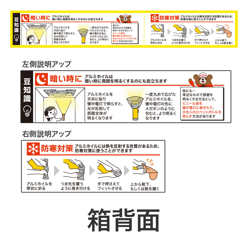 災害時に役立つアルミホイルの活用情報を、パッケージにプリントしました