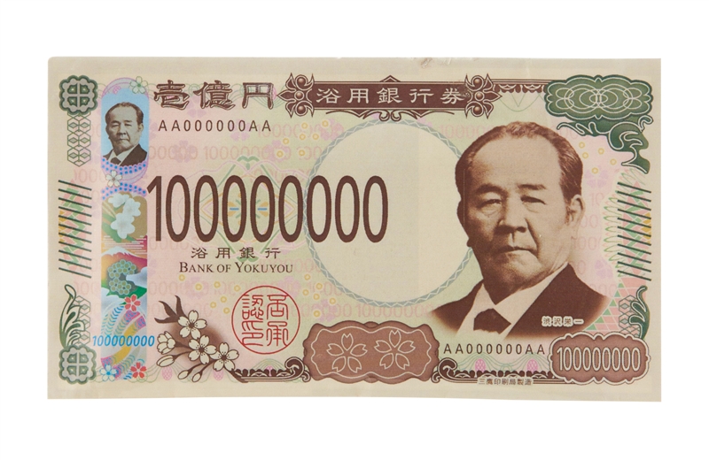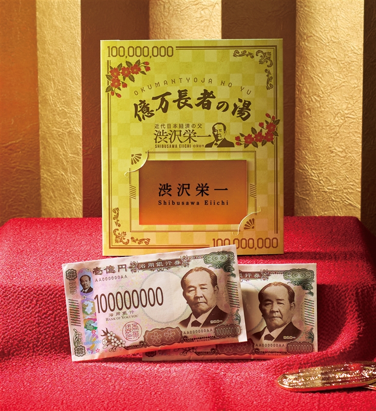 華やかなパッケージを開くと紙幣をイメージした入浴剤が登場!