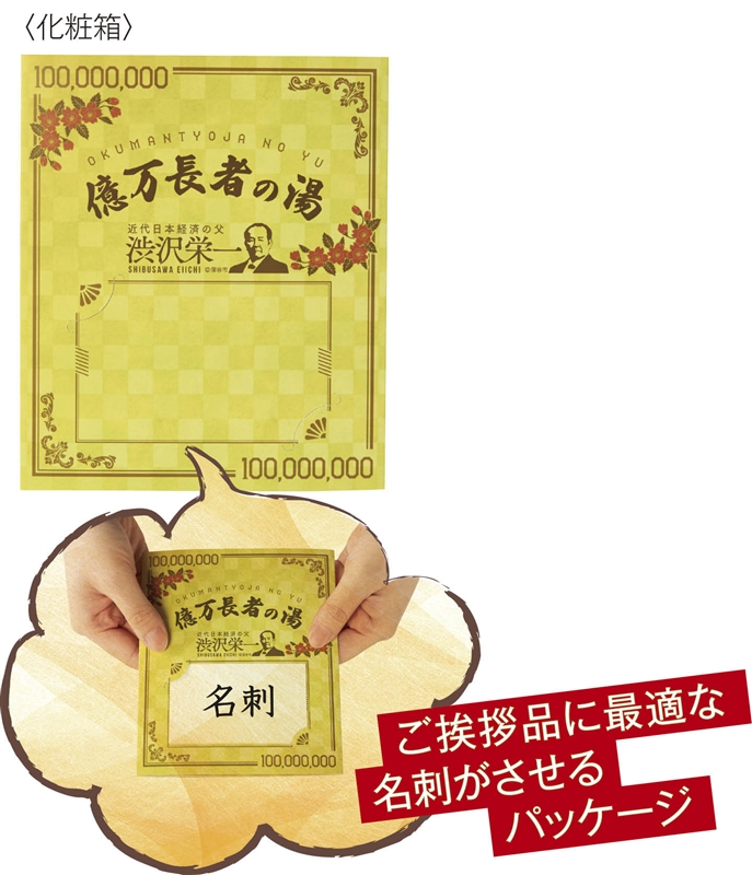 普段の入浴が一層リッチな気分になります。ご挨拶品に最適な名刺がさせるパッケージで、イベントやお渡し時の会話のフックに最適。会話のきっかけにもなるユニークな商品です。