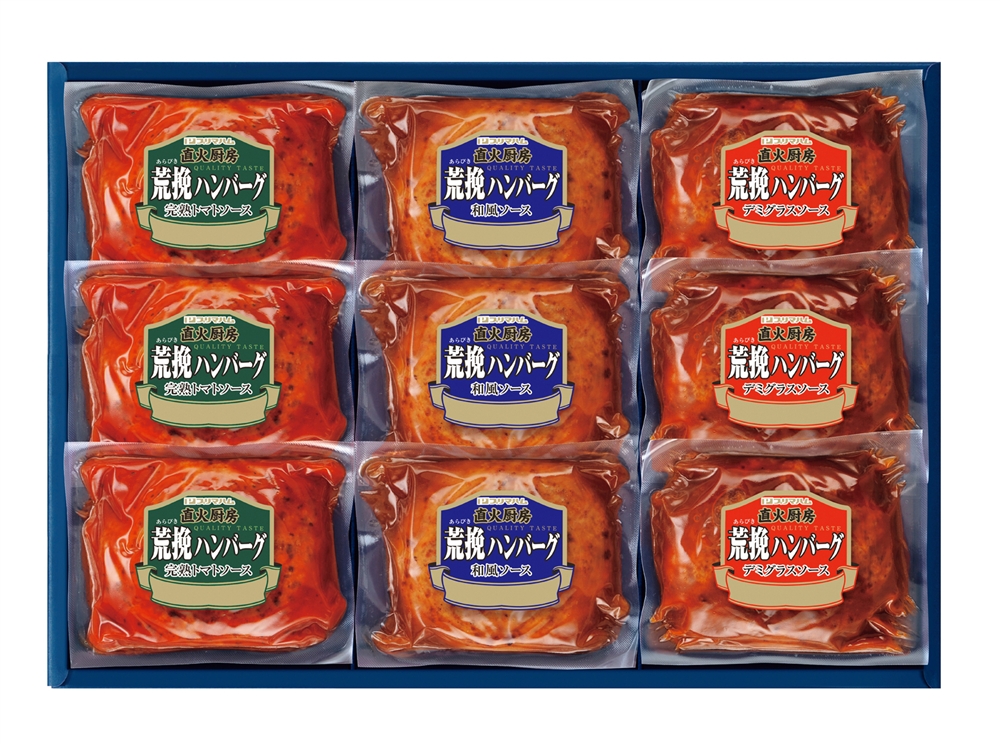 | 備考 | <セット内容> 荒挽ハンバーグ120g×9(デミグラスソース×3、完熟トマトソース×3、和風ソース×3) |