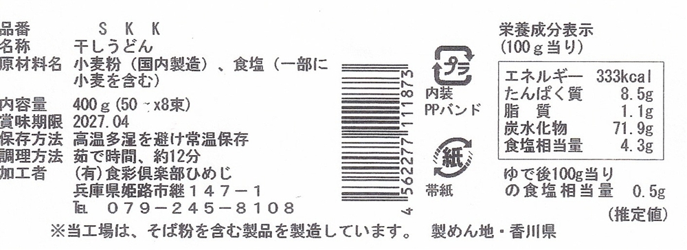 | 備考 | <セット内容> 讃岐うどん50g×8束 |