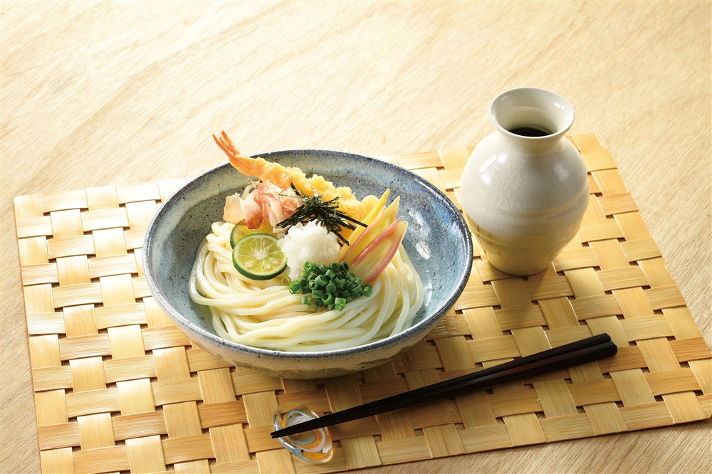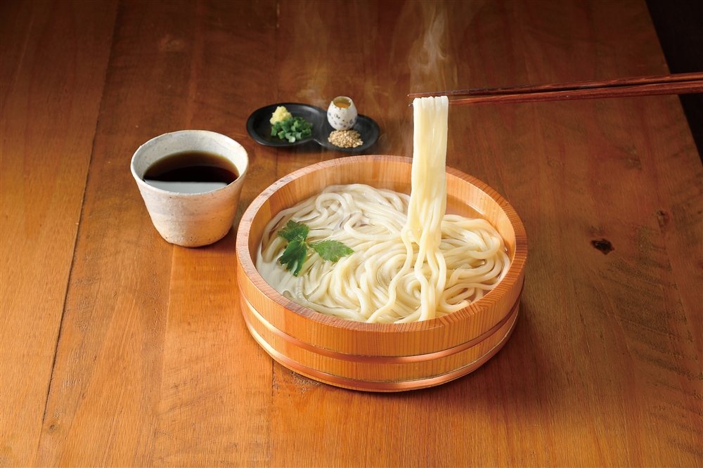香川県観音寺市で注目の観光名所に因んだ讃岐うどんを釜揚げ・釜玉・ぶっかけ用の3種類のつゆで食べ比べ!