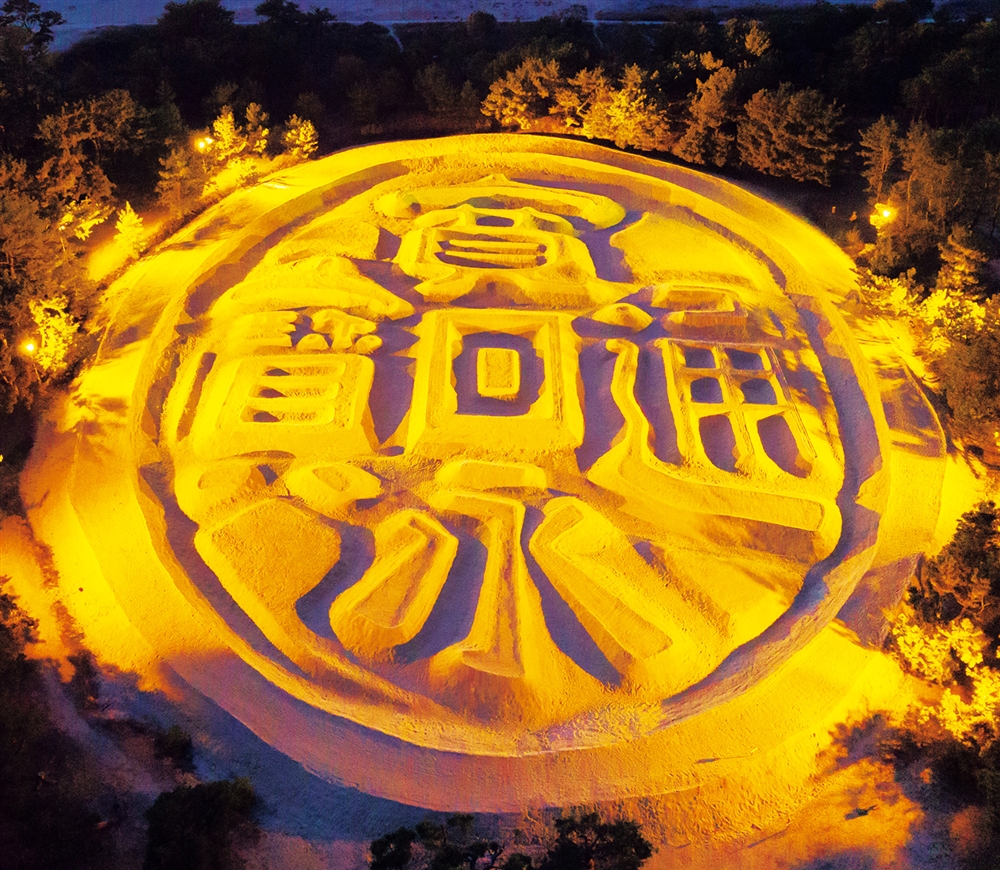 銭形砂絵「寛永通宝(琴弾公園)」と「天空の鳥居(観音寺市)」をパッケージにデザインしております。「寛永通宝」は有明浜の白砂に描かれた砂絵で東西で122m、南北で90m、周囲は345mの大きさです。「天空の鳥居」は標高404mの稲積山の頂上の鳥居越しに観音寺市街地と雄大な瀬戸内海を一望できます。