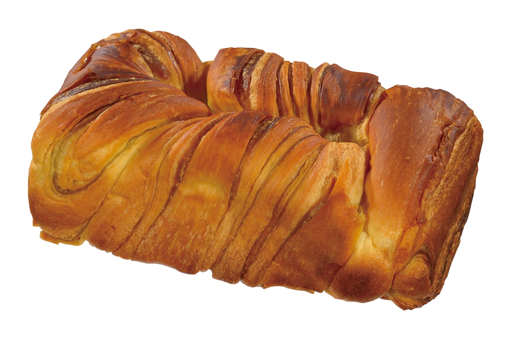ボローニャデニッシュの定番プレーンに抹茶味のシートを織り込み、焼き上げました。