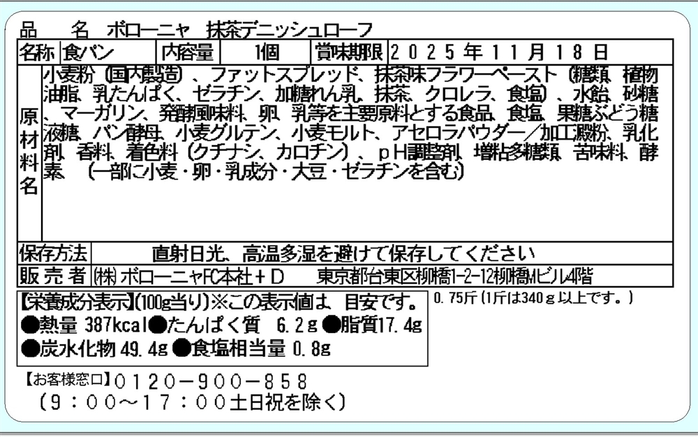 | 備考 | <セット内容> 抹茶デニッシュローフ約270g |