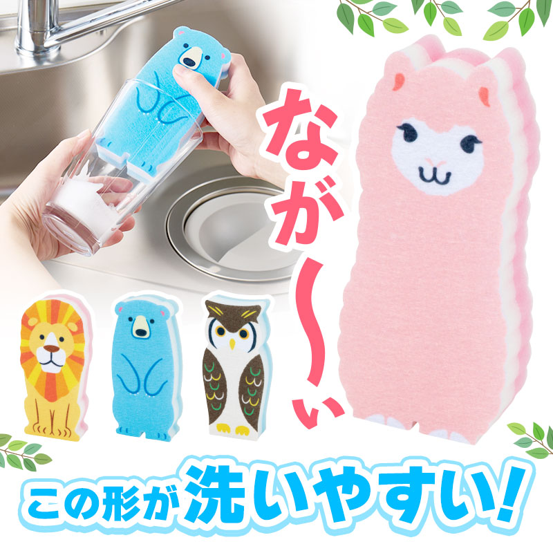 底まで洗える!スリムなアニマルスポンジ