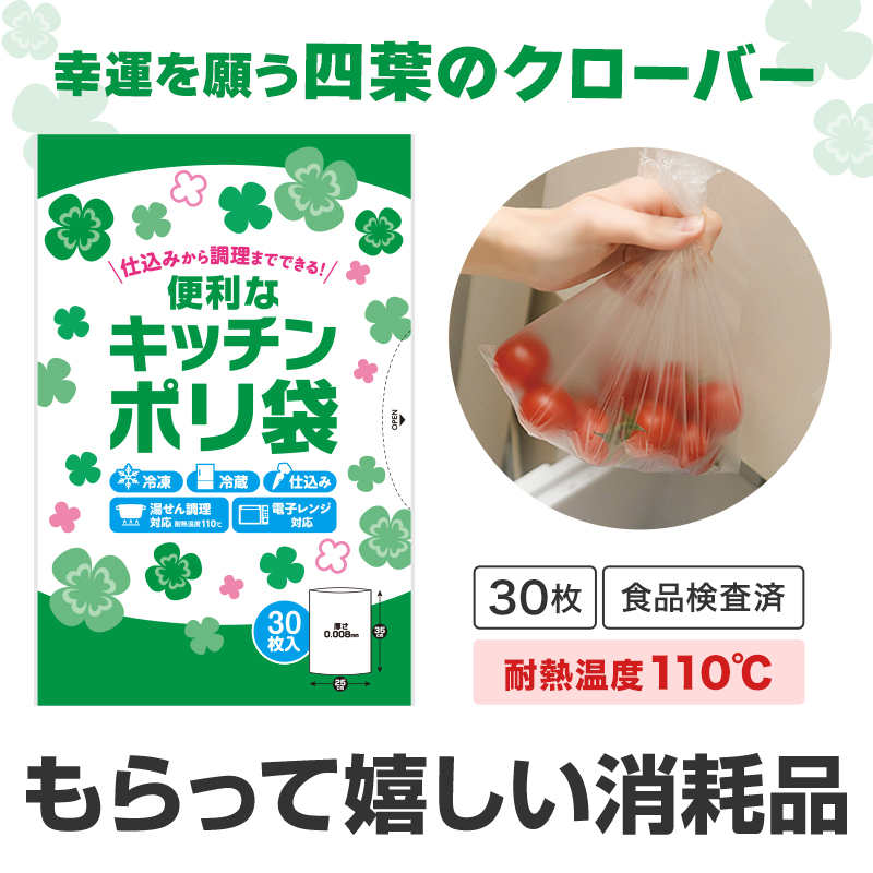 冷蔵・冷凍から調理までできるポリ袋。日用消耗品は、喜んでいただけます