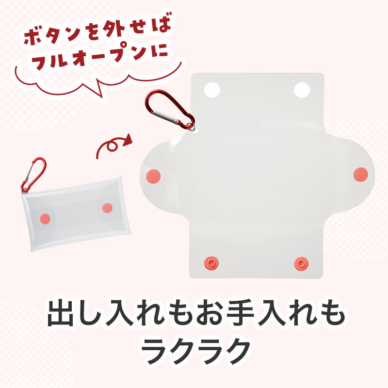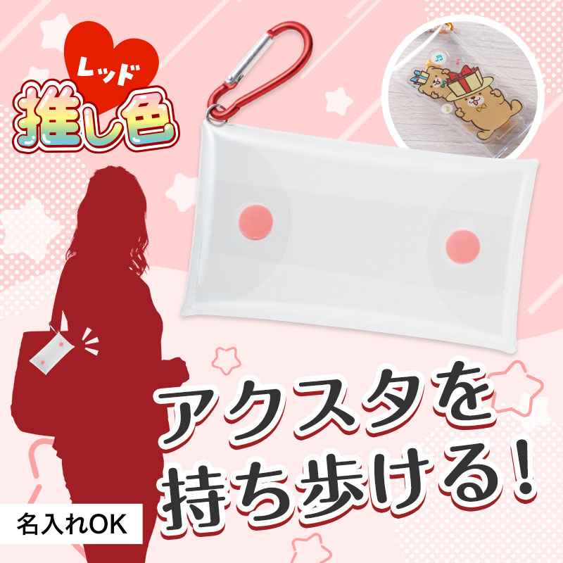 カラビナとプラボタンで豊富なカラバリ7色展開。小物入れとしてだけでなく、推し活に必須のアクスタ入れとしても最適!