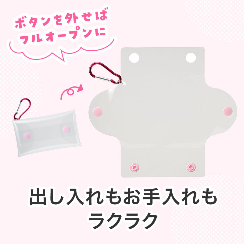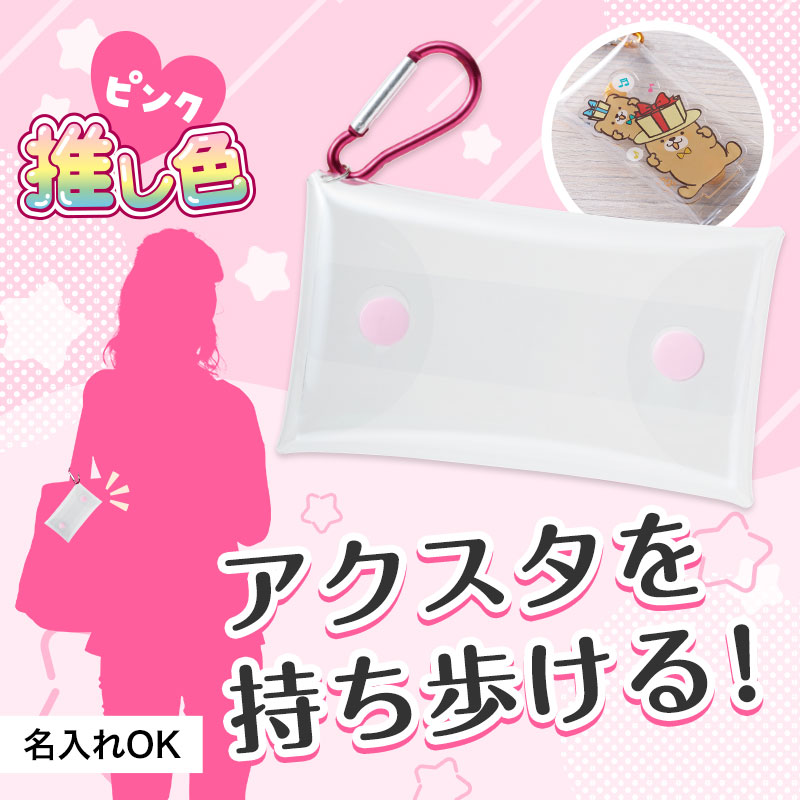 カラビナとプラボタンで豊富なカラバリ7色展開。小物入れとしてだけでなく、推し活に必須のアクスタ入れとしても最適!