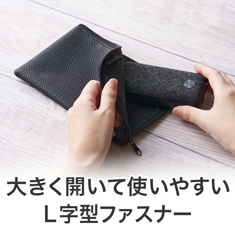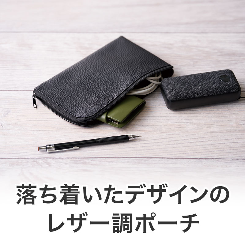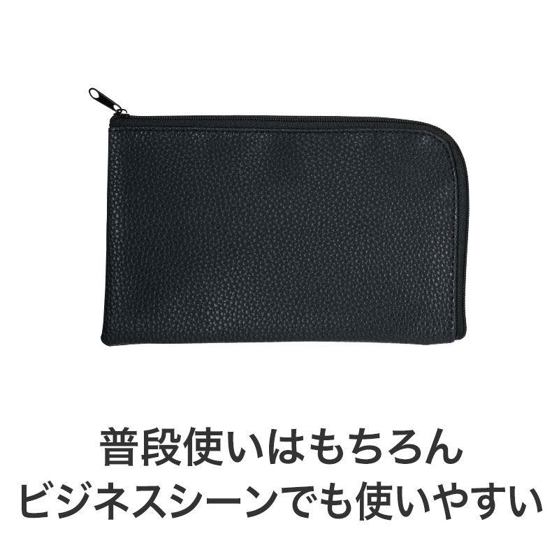 カラモ レザー調L字ファスナーポーチ ブラック