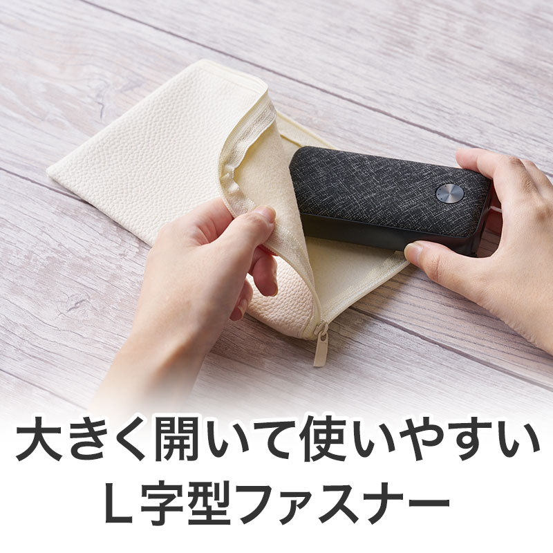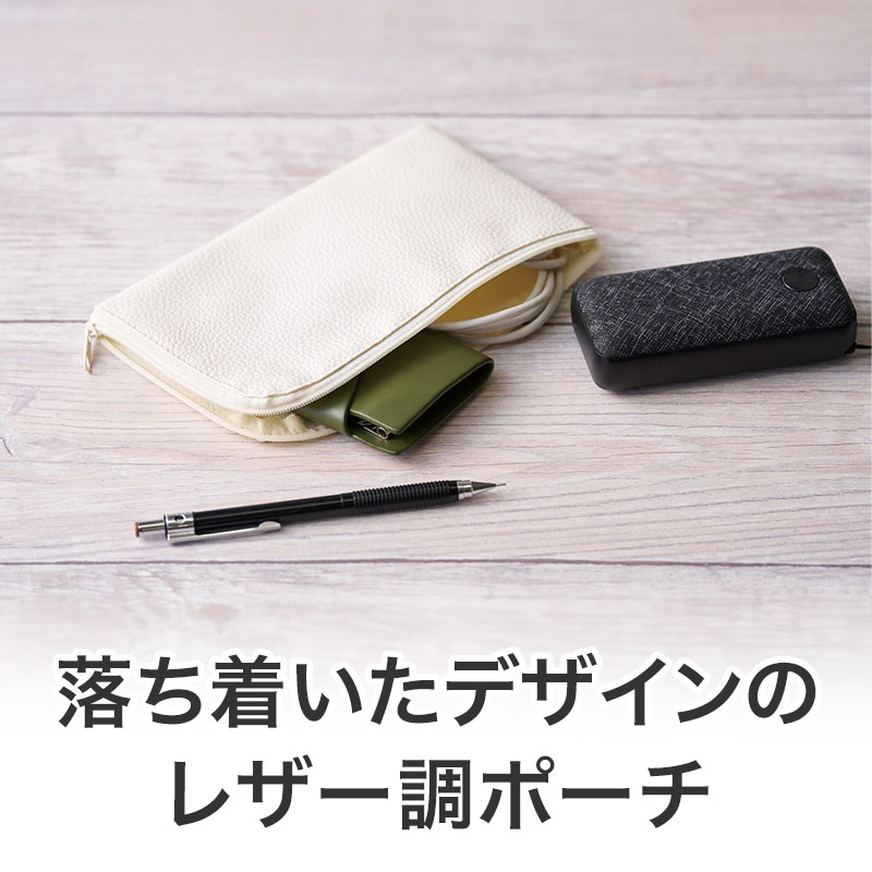 カラモ レザー調L字ファスナーポーチ ホワイト