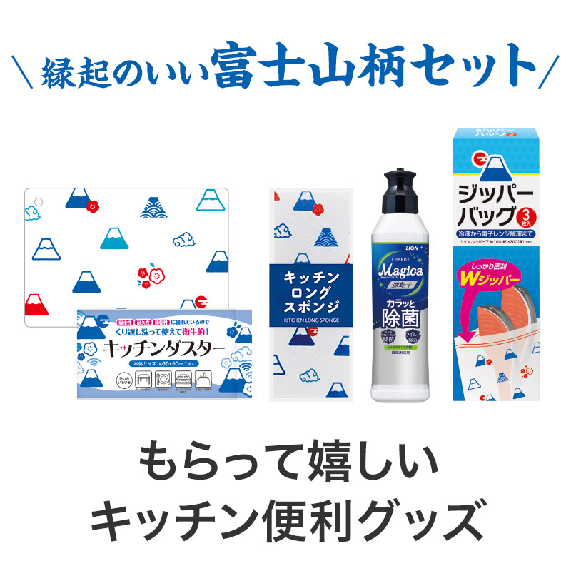 | 注意事項 | ■内容:ライオン CHARMY Magica(速乾+カラッと除菌 シトラスミントの香り) 220ml・キッチンロングスポンジ・ミニまな板シート・ジッパーバッグ(3枚入)・キッチンダスター(1枚入) 各1 |