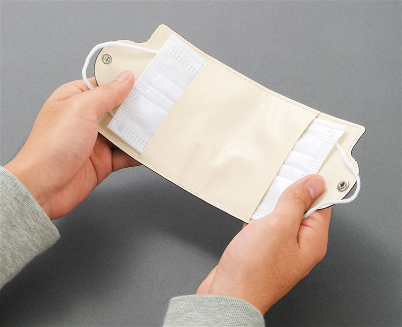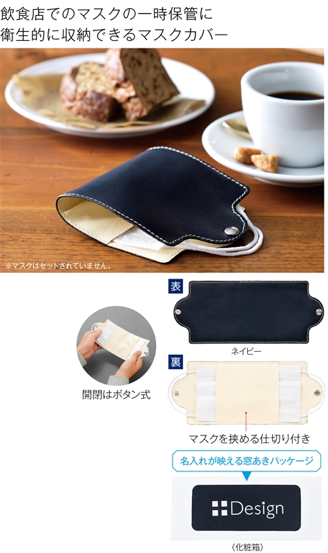 内側の仕切りにマスクを通してボタンで閉じて使用します。表側には大きく名入れスペースを取れます。厚さ約0.6cm/重量約45g(※必ず現品でご確認ください)でポストインに最適。