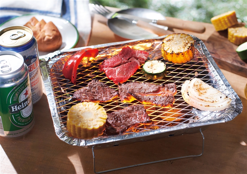 誰でも簡単にバーべーキューが楽しめるインスタントBBQセット!燃料不要なのでとても便利。