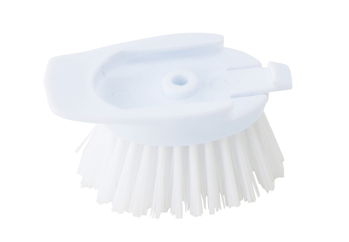 洗い物中に洗剤を追加する際も持ち替えの手間がなく便利です。付け替え可能なブラシとスポンジが付属し、食器やシンクなどさまざまな場所で活躍します。直接手を濡らさず作業でき、洗剤や冷水による手荒れ防止にも効果的。キッチンでの水仕事がぐんと楽になる実用的なツールです。