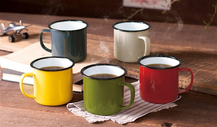 どこかレトロな雰囲気で温かみのあるホーロー製のマグカップです。