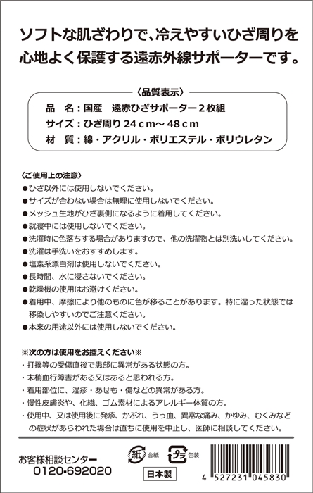 国産 遠赤ひざサポーター2枚組