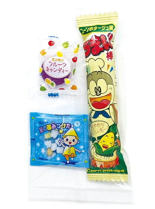 3種の詰め合わせで大変コスパのいい駄菓子のパックです。