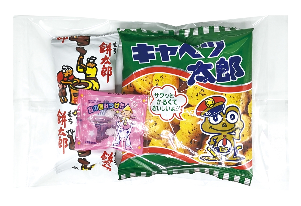 3種の詰め合わせで大変コスパのいい駄菓子のパックです。