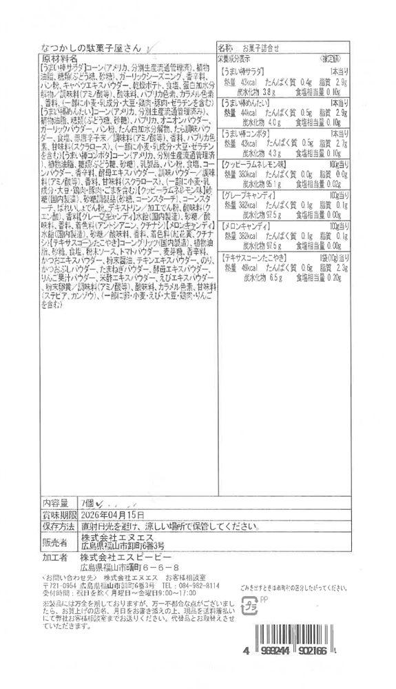 | 備考 | <セット内容> お菓子7個 |