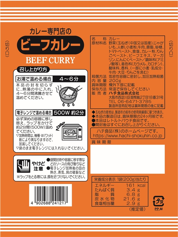 20種以上のスパイスをブレンドしたカレー粉を使用し、じゃがいもやリンゴのまろやかな甘さを加えたコクのある甘口タイプのビーフカレーです。