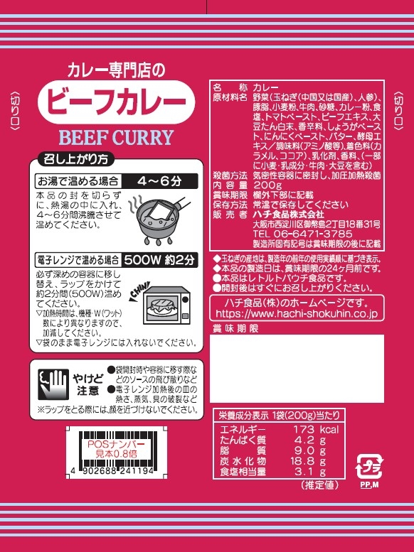 20種以上のスパイスをブレンドしたカレー粉と、丹念に煮込んだカレールゥを使用したロースト感のある辛口タイプのビーフカレーです。