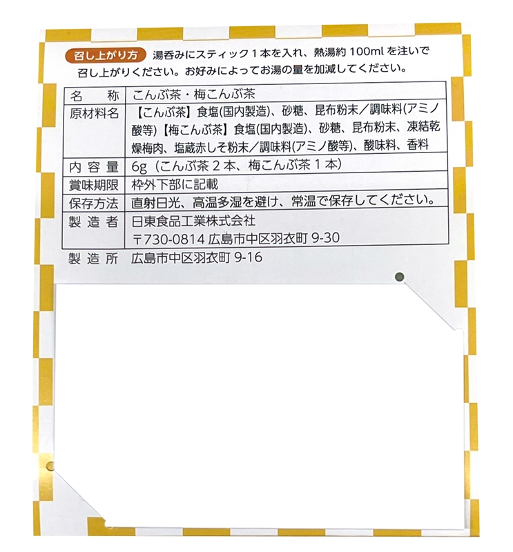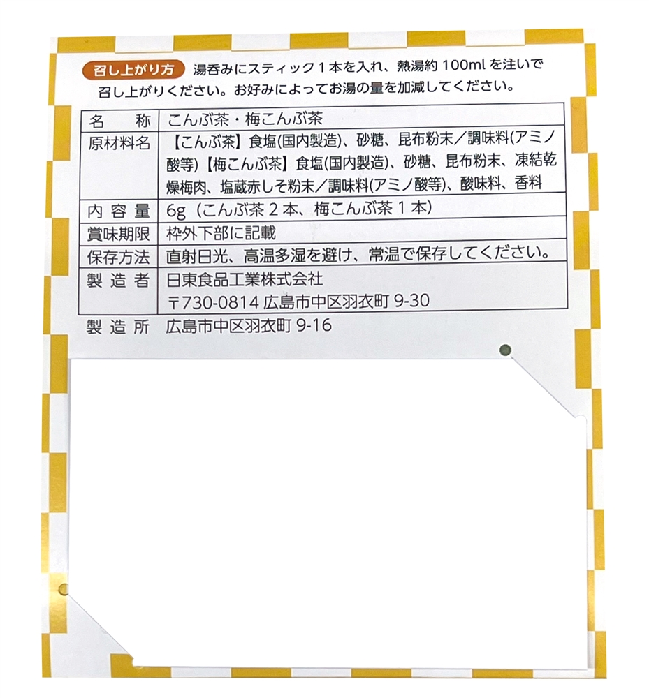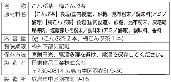 | 備考 | <セット内容> スティック昆布茶×2 スティック梅昆布茶×1 |