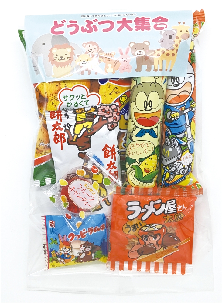 どうぶつデザインの台紙が入った、お子様も喜ぶお菓子パックです!