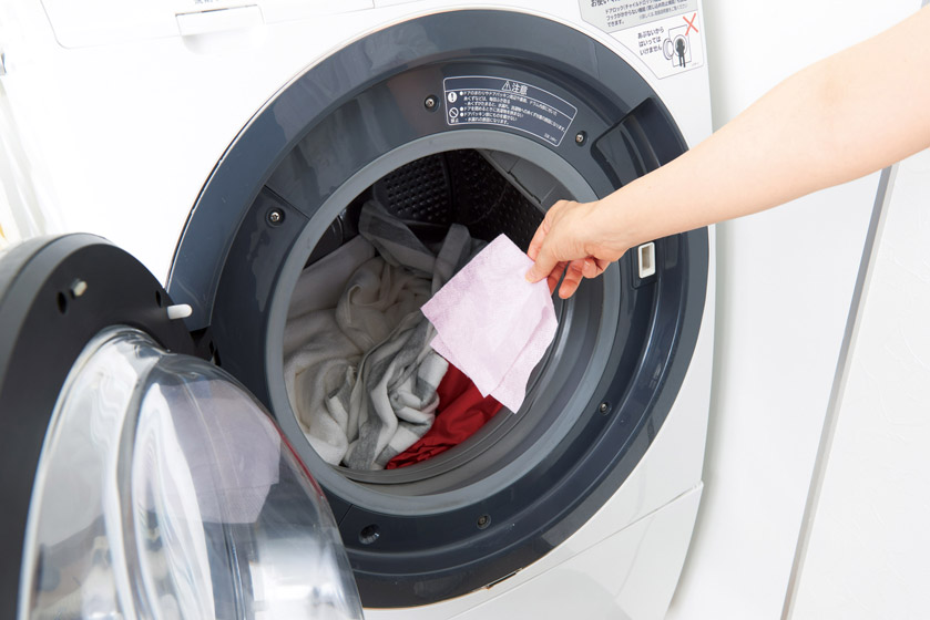 いつもの洗濯に入れるだけで簡単に色移り防止。