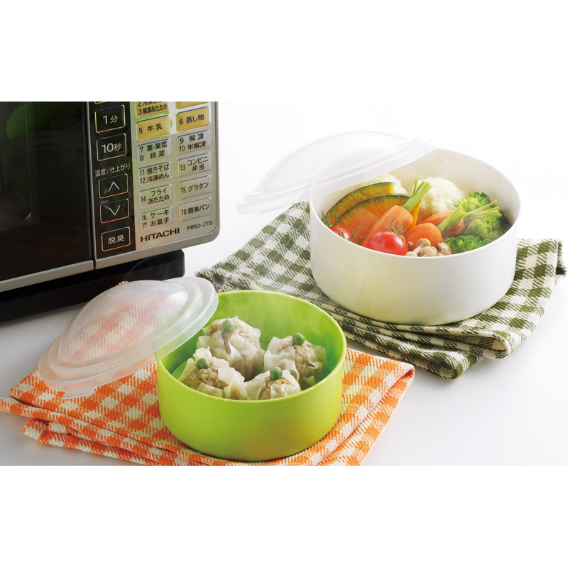 火を使わないエコクッキング。ラップいらずでさっと蒸し料理ができます。フタをしたまま冷蔵庫から電子レンジへ。目皿付なので、蒸し料理もべたつきにくく、ふっくらと仕上がります。