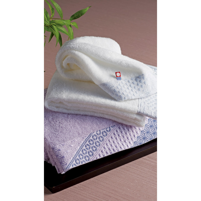 ふっくら長持ち、瀬戸内仕立て。時間をかけて紡いだ糸をふんわりと撚り、良質なタオルに仕立てました。ご縁と調和を意味する「亀甲」「籠目」「七宝」を散りばめたデザインのギフトです。