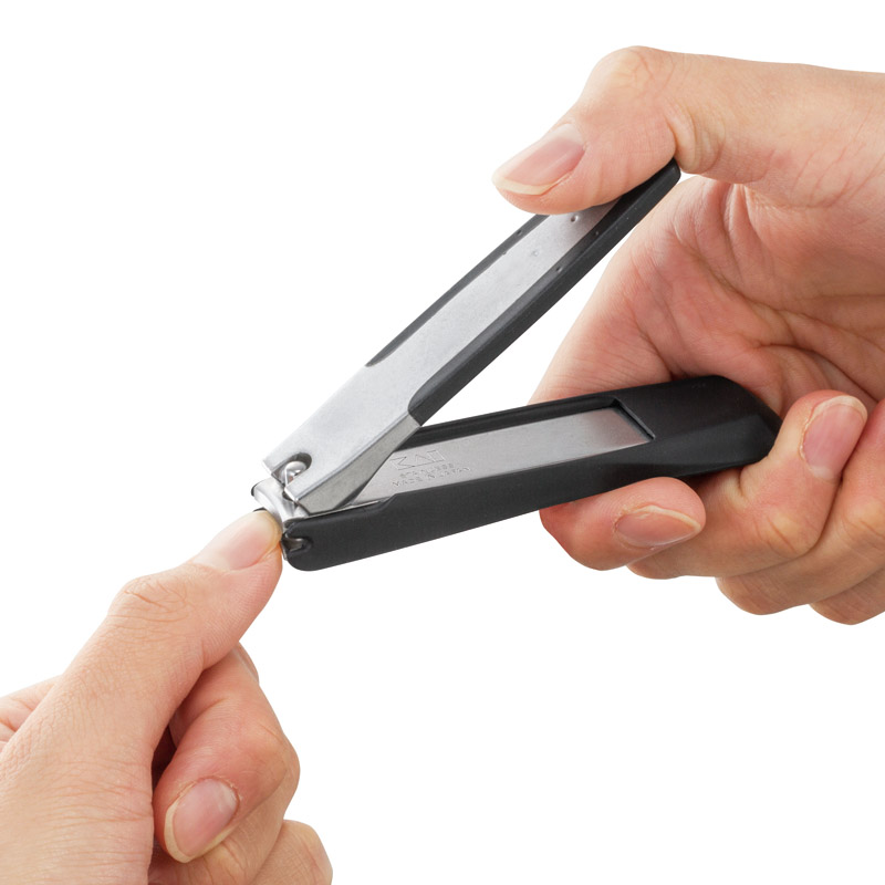 ログインツメキリの重量感と、刃先の磨きにこだわり、なめらかな切れ味を再現。本体サイドにU字溝ツメやすりを搭載。