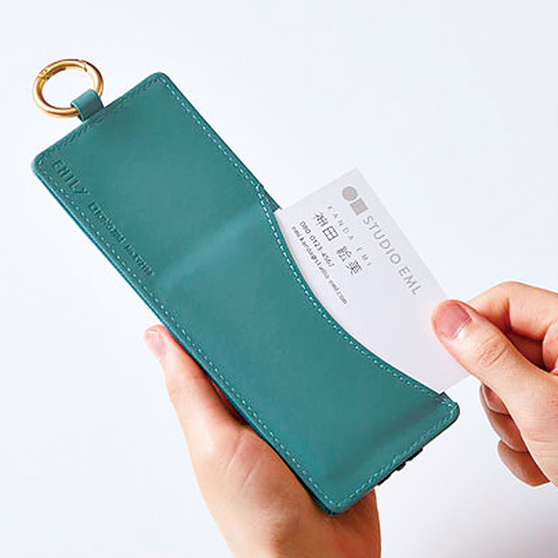 ログインノートや手帳と一緒に持ち運びやすいフラットなペンケース。裏面に名刺ポケット付き。