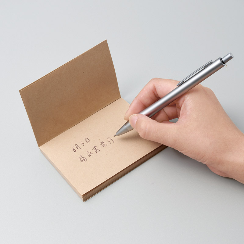 ログインサトウキビをリサイクルし、バンブーパルプと混ぜ合わせて製紙したエコなメモ。メモ用紙約72×100㎜/50枚。