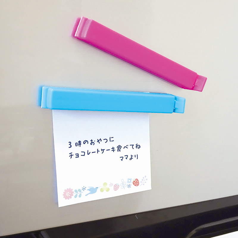 ログイン裏面マグネット付きのフードクリップ。使わない時は冷蔵庫などに貼っておけるので場所をとりません。