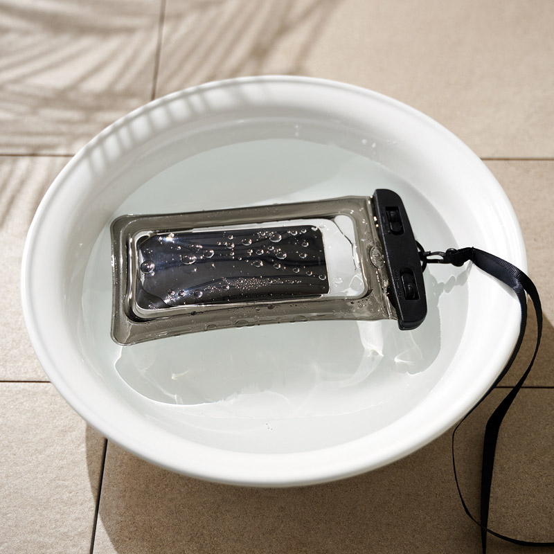 6.7インチまでのスマートフォンに対応。防水レベルIPX8で、水中でも携帯の操作やカメラなどの機能を使用できます。様々な場面で水気を気にせずスマホが使えます。