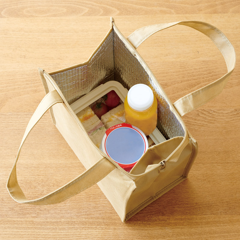 おしゃれなカラーのトートバッグ型不織布保冷温バッグ。軽量で持ち運びも便利。