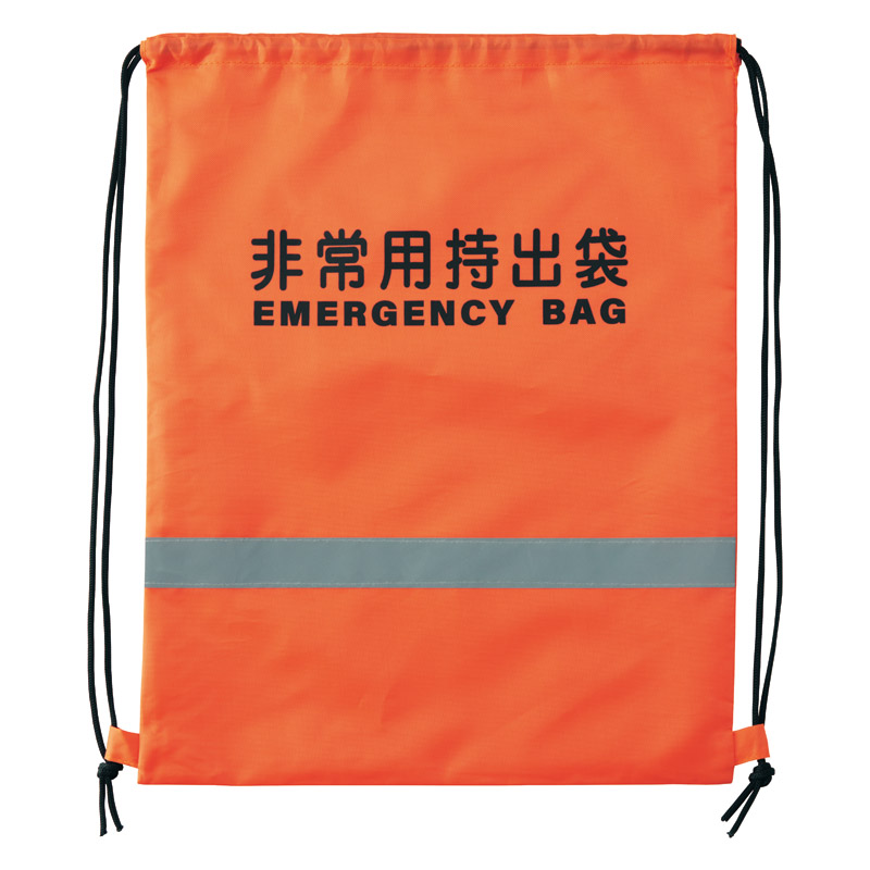 ログイン反射テープ付の非常用持出袋です。目立つオレンジ色。