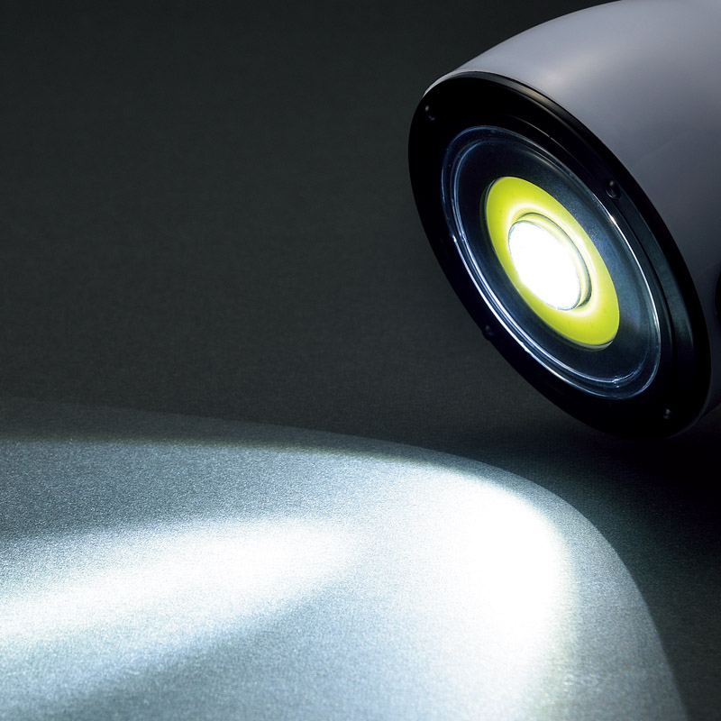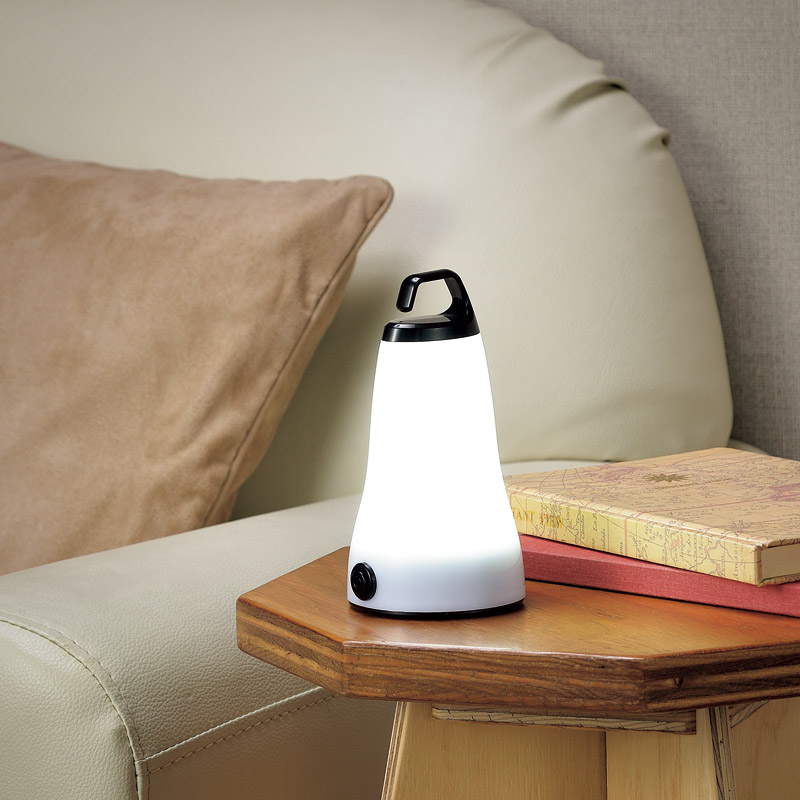 懐中電灯に、ランタンに2WAYで使えるライト。底を回転して持ち替えるだけの2WAY。ランタンはフック付きでキャンプなどでも使用可能。懐中電灯はより遠くをピンポイントに照射できるトーチライトと、全体を明るく照らせるワイドライトの2段階調整。