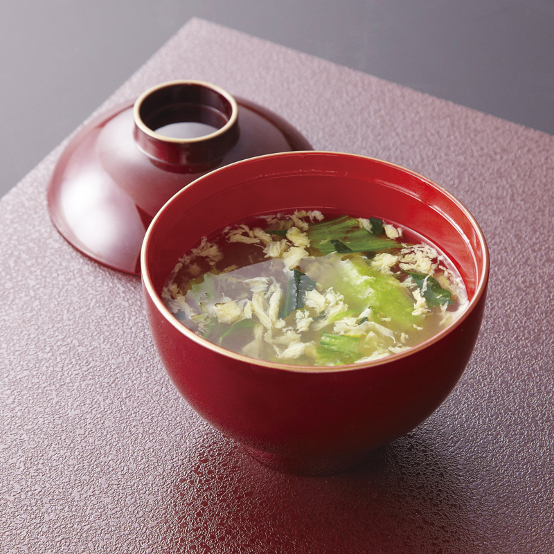あわびのお吸い物にかき卵を贅沢に使用しゆずを入れ香りをつけた至福の一杯