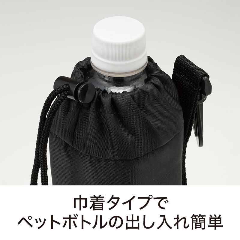 ログイン巾着タイプなので、ペットボトルの出し入れ簡単。バッグに取り付けたり、ベルトなどに直接装着することもできる2way仕様。夏のお役立ちアイテムです