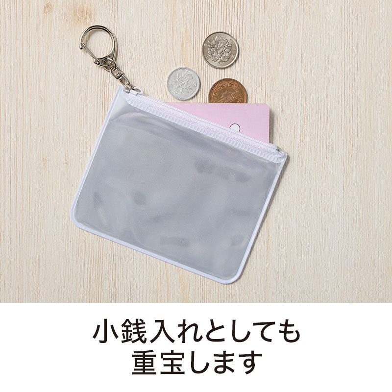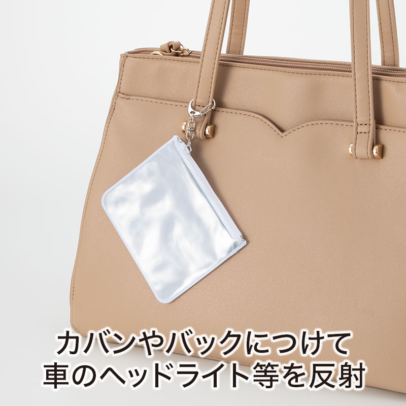 反射仕様のミニポーチ。キーホルダーのようにバッグに取り付ければ夜間の安全対策にも